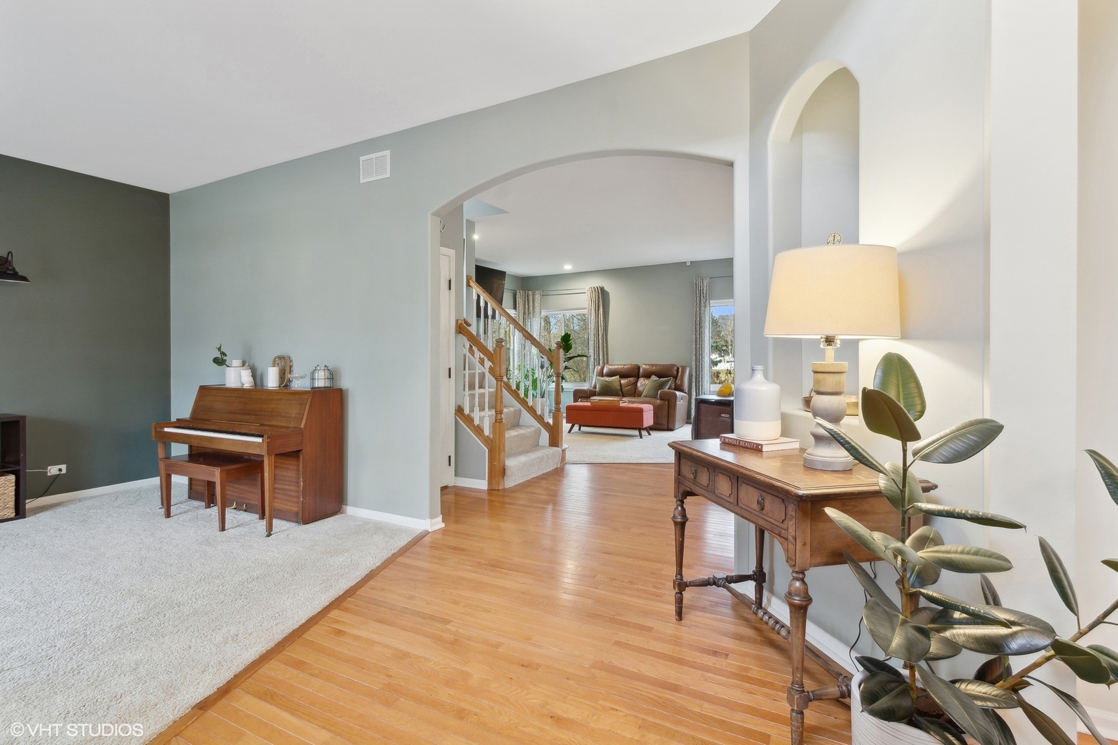 Nestled in the acclaimed BATAVIA SCHOOL DISTRICT 101, this home features breathtaking water views. Center entrance welcomes you to generous living and dining rooms. Recently updated, white kitchen opens to large family room with gas fireplace. High ceilings throughout exude a sense of spaciousness. Primary bedroom features updated bathroom and large walk in closet. 3 upstairs family bedrooms and another full bath complete the second level. The finished basement with full bathroom is an excellent flex space. Oversized, deep, 24 ft garage. Surrounded by Abbey Farms. Conveniently located near Metra!