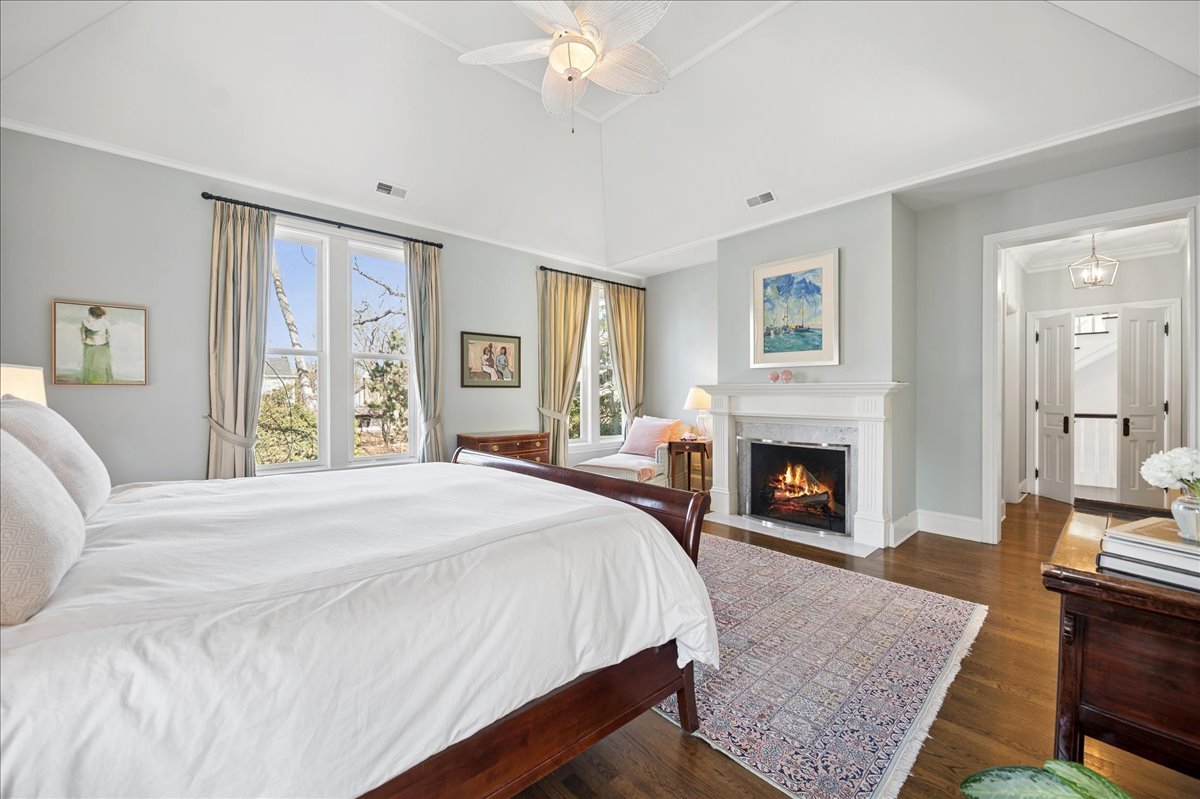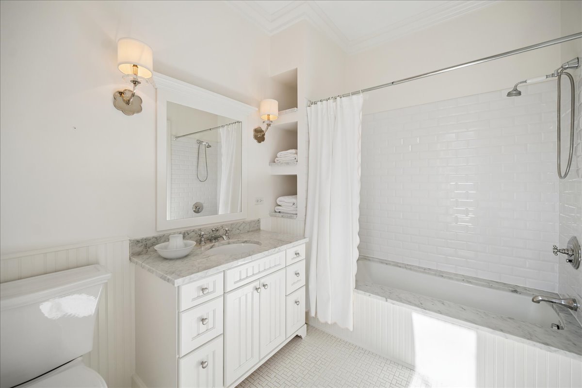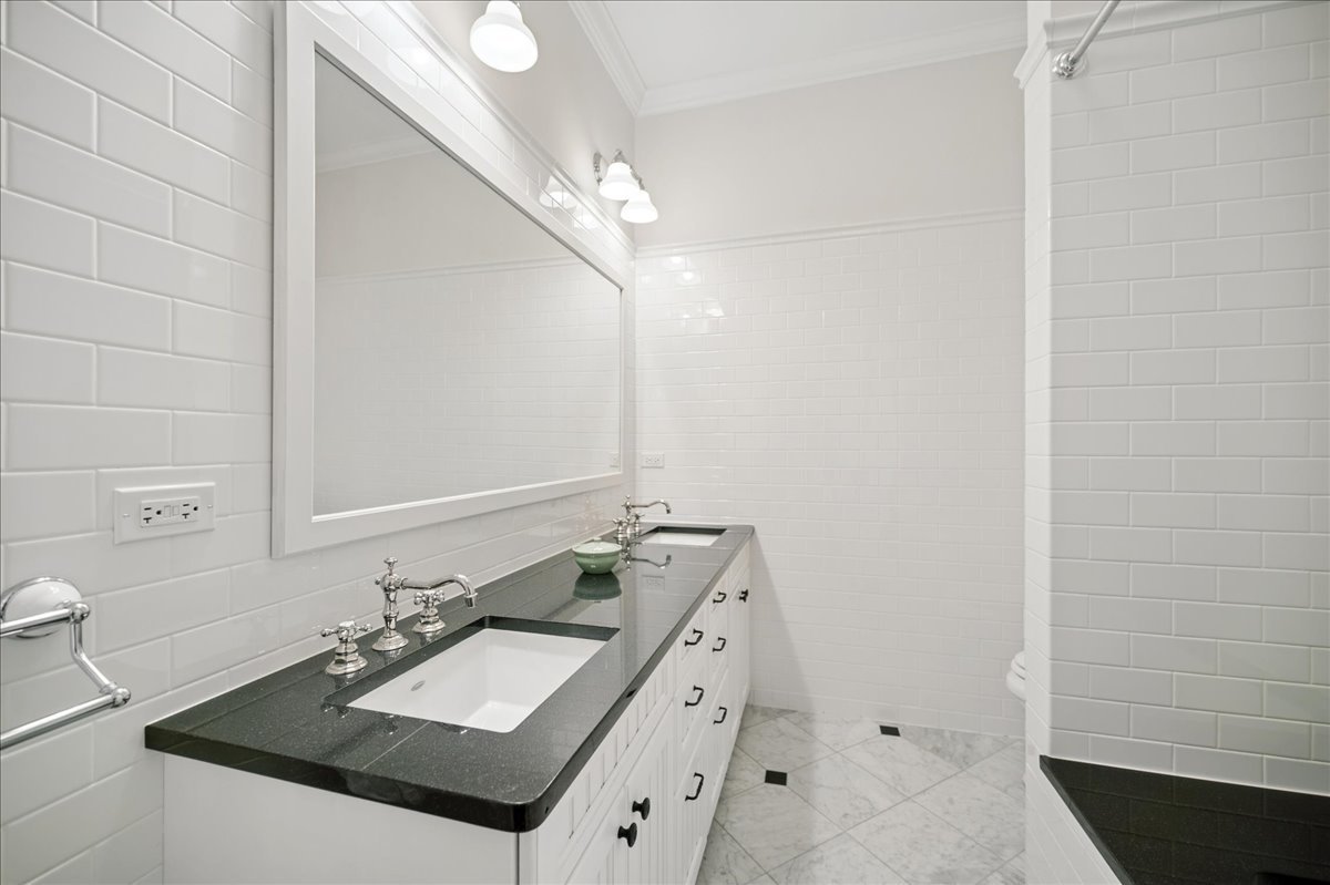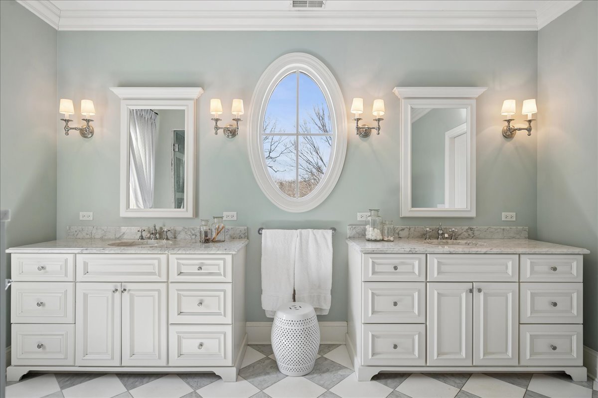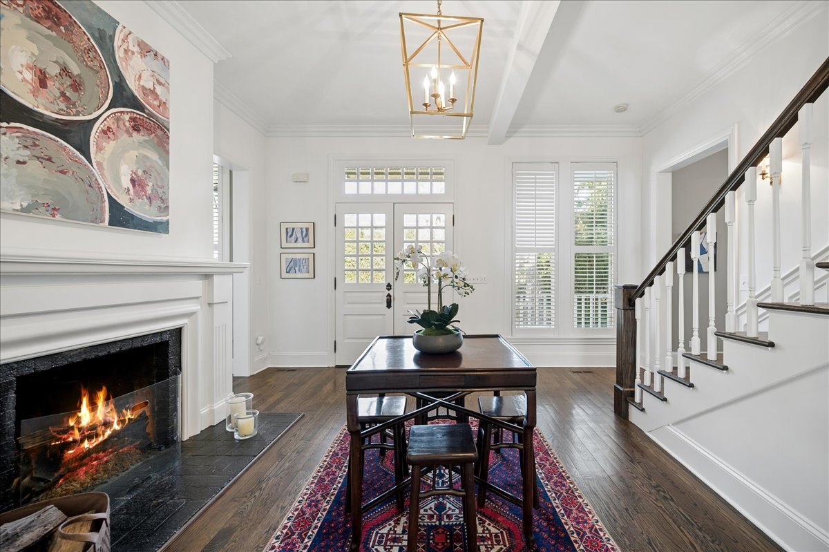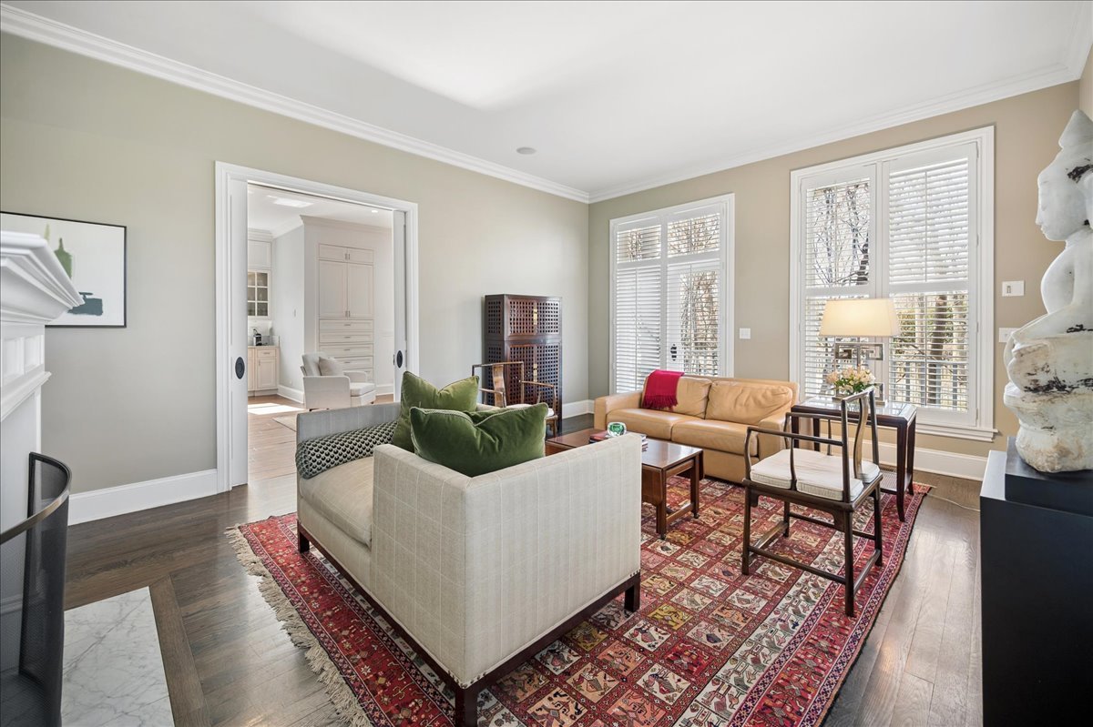 Set on a beautifully landscaped .33 acre property in one of Winnetka's most convenient locations, 875 Gordon Terrace is a significant historic home thoughtfully reimagined through a recent comprehensive renovation and expansion. An elegant wrought iron fence with intricate scrollwork encloses the property, and the sweeping wraparound covered porch immediately sets the tone. Double doors with beveled glass divided lights open to a spacious foyer with a gas fireplace. A stately staircase, paneled millwork, 10' ceilings and Visual Comfort lighting create a striking first impression. Large windows and a French door to the porch fill the living room with natural light and overlook the lovely landscaped grounds. A wood-burning fireplace makes it an easy place to gather. The banquet-sized dining room features generous windows, a built-in corner cupboard, and French doors that open to the sunroom/breakfast room. The kitchen is truly the heart of the home. Two substantial islands provide plenty of room for prep, seating, and conversation. A 6 foot Aga stove anchors the space, along with a Sub-Zero refrigerator, two refrigerator drawers, Bosch dishwasher, Dacor microwave, two disposals, and two full-sized sinks. Hand-scraped walnut floors run throughout, and a casual seating area centers around a corner wood-burning fireplace with Dutch tile surround. Just beyond are the family room and a sunroom with French doors leading to the private patio-an easy indoor-outdoor flow. A well-designed mudroom with slate floors is accessed from the attached 2.5-car garage and front yard, and a wall of cubbies and built-ins keeps everything organized. The second level offers four bedrooms and three full baths. The primary suite feels private and well-scaled, with a wood-burning fireplace, tray ceiling, and two large walk-in closets. The spa bath includes marble-topped vanities, a steam shower, and a whirlpool tub. Three additional bedrooms and two baths, one ensuite, complete this level. The third floor is brightened by a central skylight. A sitting room with a wall of windows and window seat creates a comfortable hangout space, along with two additional bedrooms and an updated hall bath. The lower level includes a dug-out rec room with a wall of built-in bookcases and storage below, a full bath with glass-enclosed shower, large storage closets, a laundry room, and three additional rooms for storage and utilities. All just steps from Hubbard Woods restaurants, shopping, the Metra, and schools.